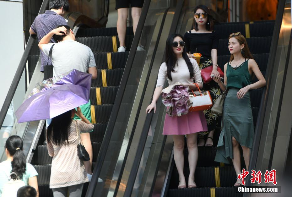 5月17日,觀音橋步行街上美女著涼裝出行。據(jù)中央氣象臺(tái)消息,17日-19日,北方多地將遭遇今年以來首次大范圍高溫天氣,涉及京津冀、內(nèi)蒙古等7省市區(qū),其中18日高溫范圍最廣、強(qiáng)度最大,內(nèi)蒙古東部偏南地區(qū)局地更有可能出現(xiàn)38-40℃的最高氣溫。中新社記者 陳超 攝