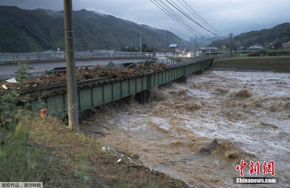 臺風為九州島帶來嚴重災(zāi)情,熊本及長崎分別有6.2萬及6,400戶停電,九州島電力公司正在搶修。九州島新干線從博德站至鹿兒島中央站一度全線停駛,博德站至熊本站的南北雙向列車其后恢復(fù)正常服務(wù)。圖為九州島福岡縣,洪水淹沒道路。