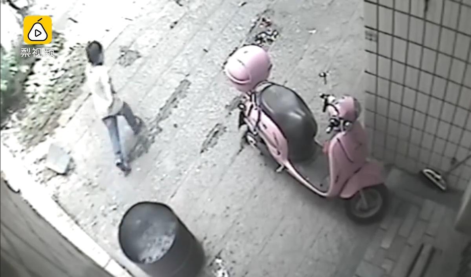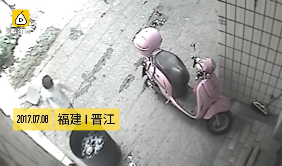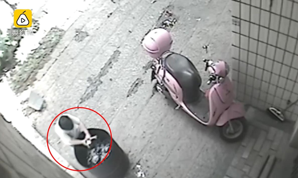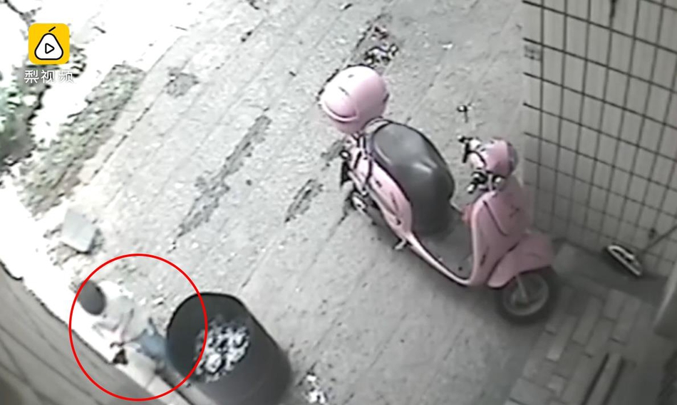 男童扔完后離開(kāi)現(xiàn)場(chǎng)。