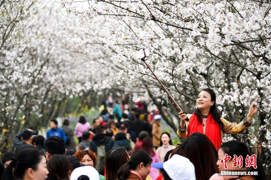 連日來(lái),江西南昌鳳凰溝櫻花盛放,形成延綿萬(wàn)米的櫻花隧道,場(chǎng)面極為壯觀,游人絡(luò)繹不絕。 鮑贛生 攝
