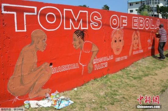 當(dāng)?shù)貢r間9月8日,在利比里亞,蒙羅維亞街頭,一名叫斯蒂芬·多伊的藝術(shù)家在墻上創(chuàng)作壁畫向人們介紹致命的埃博拉病毒病發(fā)癥狀。世界衛(wèi)生組織8日發(fā)出警告,利比里亞已經(jīng)成為西非受埃博拉疫情肆虐最嚴(yán)重的國家,該國因疫情死亡的人數(shù)已經(jīng)占整個西非發(fā)病死亡人數(shù)的一半以上。