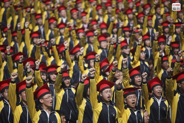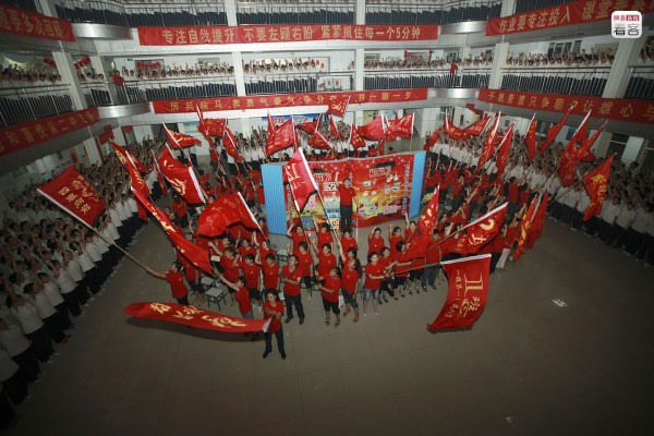 在一則2014年衡水中學(xué)高考百日誓師大會(huì)的視頻中,學(xué)生們聲音嘶啞地大喊著“專注、投入!”“我行!我行!我行!”,情緒極為高亢投入。
