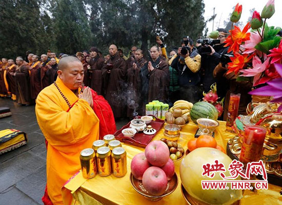 2017年1月5日在河南省登封少林寺,少林寺臘八施粥并舉行祈福法會,吸引數(shù)千名群眾前來喝粥。昨天是傳統(tǒng)的“臘八節(jié)”,隨著這一天的到來,年味漸濃,整個舊歷年年俗隨之拉開帷幕。