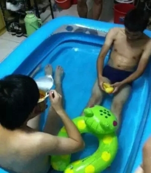 對于沒有空調(diào)的宿舍,夏天是最難熬的??磥頌榱吮苁?,童鞋們想盡了各種奇葩招數(shù)??!宿舍居然還有泳池?。『芮鍥霭。?!有木有?。。?/p>