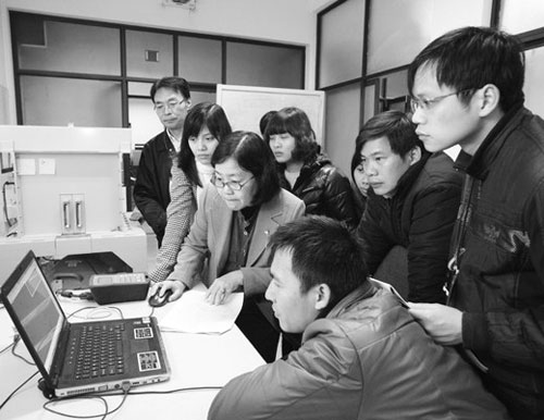 在河內(nèi),日本核專家對參加培訓(xùn)課程的越南學(xué)生進行輔導(dǎo)。(世界新聞報圖片)