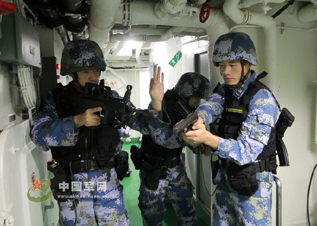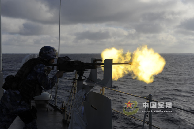 海軍第十一批護(hù)航編隊(duì)赴亞丁灣、索馬里海域執(zhí)行護(hù)航任務(wù)以來,針對海況復(fù)雜多變,海盜活動更趨隱蔽、猖獗、頻繁等嚴(yán)峻特點(diǎn),編隊(duì)指揮所科學(xué)籌劃護(hù)航行動,研究掌握海盜活動的特點(diǎn)規(guī)律,合理安排值更執(zhí)勤,加強(qiáng)巡邏警戒,狠抓各項(xiàng)制度落實(shí),搞好預(yù)想預(yù)測,完善多套方案預(yù)案,著力提高快速反應(yīng)能力。在查證、驅(qū)離疑似海盜船只時(shí),確保預(yù)先發(fā)現(xiàn)、快速反應(yīng)、掌握主動,把兩個(gè)“百分之百”要求落到實(shí)處。圖為3月下旬編隊(duì)實(shí)施護(hù)航行動時(shí)的一組場景。