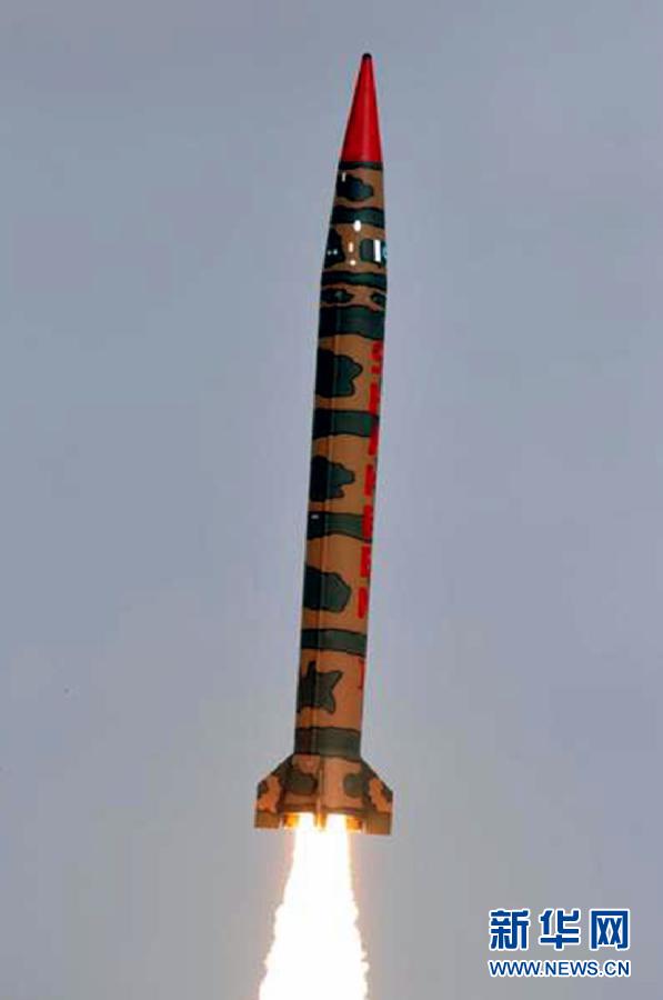 這張由巴基斯坦國際公共關(guān)系服務(wù)部門(ISPR)4月25日發(fā)布的照片顯示了成功發(fā)射的可攜帶核彈頭的中程彈道導(dǎo)彈。巴基斯坦軍方25日發(fā)表聲明稱,巴基斯坦當(dāng)天成功發(fā)射了可攜帶核彈頭的中程彈道導(dǎo)彈,并成功擊中海上預(yù)定目標。