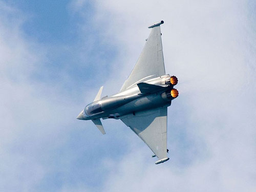 據(jù)介紹,英國BAE系統(tǒng)公司出品的“臺風(fēng)”戰(zhàn)斗機是當(dāng)前國際市場上能夠買到的最先進(jìn)戰(zhàn)機(無論美國F-35還是俄羅斯T-50尚未開售,而F-22只供美軍自用)。在去年北約干涉利比亞內(nèi)戰(zhàn)行動中,英國空軍的5架“臺風(fēng)”戰(zhàn)機依托意大利南部特拉帕利基地,在利比亞東部班加西至艾季達(dá)比耶的狹長空域建立起“死亡地帶”,無情擊落任何效忠利比亞前領(lǐng)導(dǎo)人卡扎菲的飛機,與此同時,“臺風(fēng)”戰(zhàn)機還攜帶大量精確打擊彈藥,襲擊利比亞政府軍的地面目標(biāo)。在整場戰(zhàn)事中,“臺風(fēng)”戰(zhàn)機“一絲不茍”地執(zhí)行從偵察到火力壓制的多種任務(wù)。