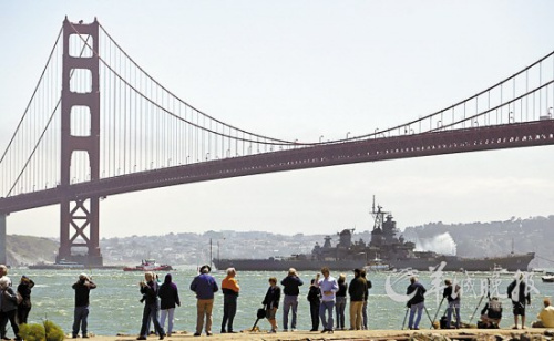 戰(zhàn)艦26日由多艘船只伴隨,由拖船拖曳,通過舊金山金門大橋,駛出舊金山灣,吸引大量民眾觀看。太平洋戰(zhàn)列艦中心主席羅伯特·肯特說:“世界各國海軍中,這艘戰(zhàn)艦最為獨特。其他戰(zhàn)列艦中一些沉沒,一些拆毀,一些變成博物館?!瑠W瓦’號是最后一艘找到歸宿的戰(zhàn)列艦?!?/p>