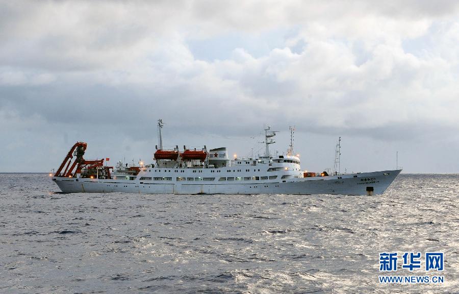 6月19日,成功完成下潛任務的“蛟龍”號母船“向陽紅”號在海上航行。