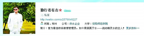 據(jù)了解,朱志賢是城管局最初的一名微博管理員,現(xiàn)因工作需要被借調(diào)到了鄭州市自來水公司。