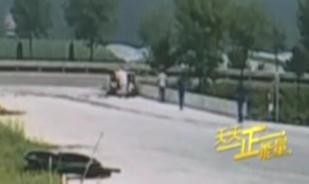 三輪突然側(cè)翻 市民抬車(chē)救人