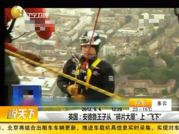 英國安德魯王子3日早晨利用繩索從歐洲最高建筑倫敦“碎片大廈”“飛下”約239米,為慈善機(jī)構(gòu)募集善款。安德魯王子是英國王位第四順位繼承人,現(xiàn)年52歲。他當(dāng)天從大廈第87層出發(fā),借助繩索下降至20層,耗時(shí)30分鐘?;顒?dòng)結(jié)束后,他說:“我永遠(yuǎn)不會(huì)再這么做了。”