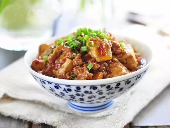 原料:豆腐2塊、豬肉餡50克、油、鹽、姜、蒜、花椒、老抽、淀粉、豆瓣醬、辣椒粉