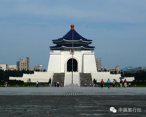 中正紀(jì)念堂幅員廣闊,占地一萬五千六百平方公尺,由中山南路、愛國東路和信義交圍而成,以中國庭園造景為主要設(shè)計形制,加廊窗棱古典而幽雅,整體建筑則以藍(lán)、白二色搭配相和,有著自由、平等的寓意。