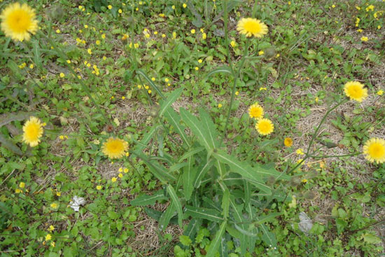 原生形態(tài):抱莖苦荬菜多年生草本,高可達(dá)1米許。根粗壯而垂直。莖直立。根生葉排成蓮座狀,葉片長圓狀倒披針形,倒向羽裂狀或羽狀缺刻,先端短尖或鈍圓,基部慚狹成柄,花期通常不萎落;莖生葉基部抱莖。頭狀花序排成傘房狀;總苞圓摘狀,外層苞片極短小,內(nèi)層苞片線狀披針形;花黃色,全部為舌狀花,先端5齒裂;花柱細(xì)長,柱頭2裂,冠毛白色,一層。瘦果紡錘形,稍扁,果喙長約為瘦果的1/4,通常與瘦果不同色。花期春季。生于山腳、路邊、疏林內(nèi)、河邊。