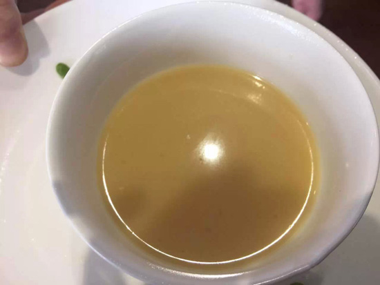 炸過的蛋液特別耐燉,而且越燉越香。李大師說了要想燉出來的湯濃稠色白,味道香濃,還要加一樣?xùn)|西。這個(gè)東西絕對(duì)好,學(xué)會(huì)怎么做之后,燉菜、下面條,都是無敵的調(diào)味料!至于這道菜的具體做法,您還得看李大師的現(xiàn)場(chǎng)操作。