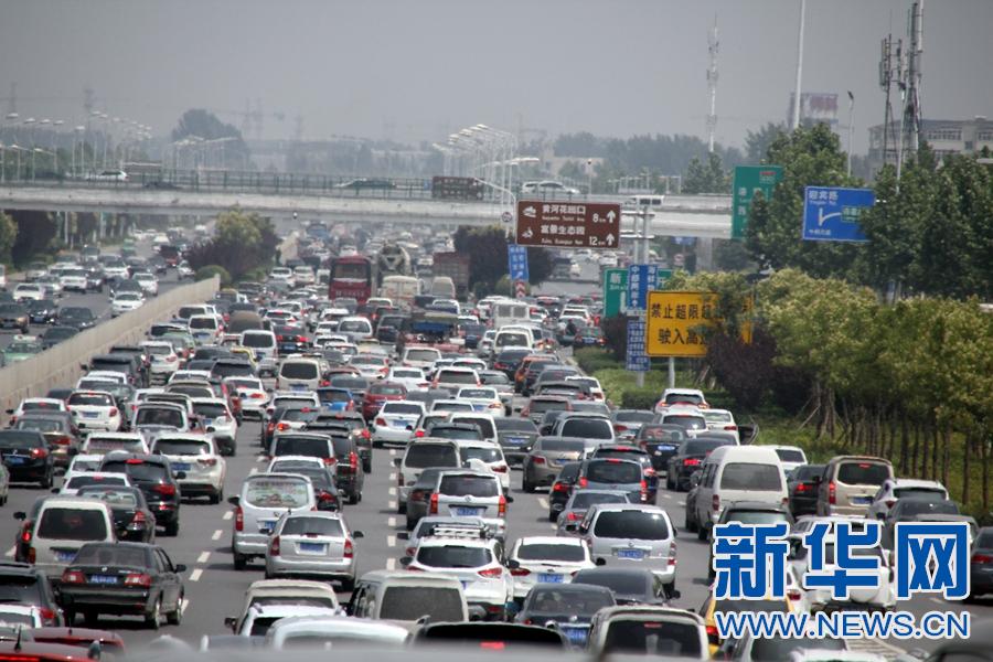 端午首日鄭州堵車排長龍 小狗車內(nèi)張望